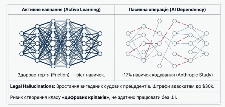 Це веде до формування шару «цифрових кріпаків» — професіоналів, чия цінність повністю залежить від доступу до конкретної платформи ШІ.1
