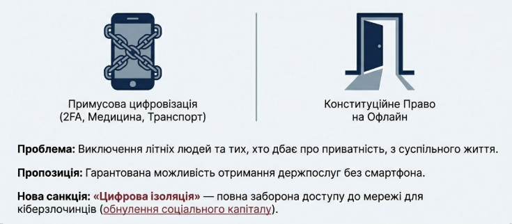 - Право на офлайн: захист від примусової алгоритмізації життя.