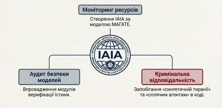 Для реалізації цього бачення необхідне створення глобального органу — Міжнародного агентства з штучного інтелекту (IAIA), за моделлю МАГАТЕ, яке моніторитиме обчислювальні ресурси та проводитиме аудит безпеки фронтирних моделей. Без такого контролю людство ризикує увійти в епоху «синтетичної тиранії», де вибір індивіда буде лише результатом прихованих маніпуляцій коду. Альфа-0 — це наш шанс зберегти обличчя в дзеркалі технологій, яке стає все більш спотвореним.